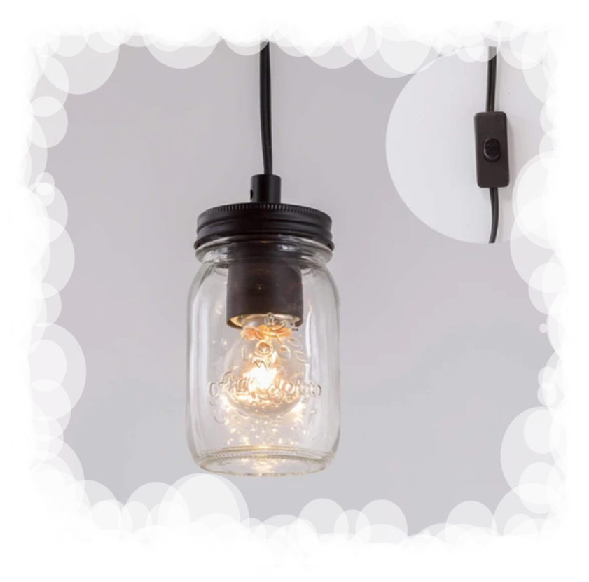 The Mason jar covers a warm bulb inside making the lighting chime with your kitchen area. With a plug, it can be turned on and off more easily.