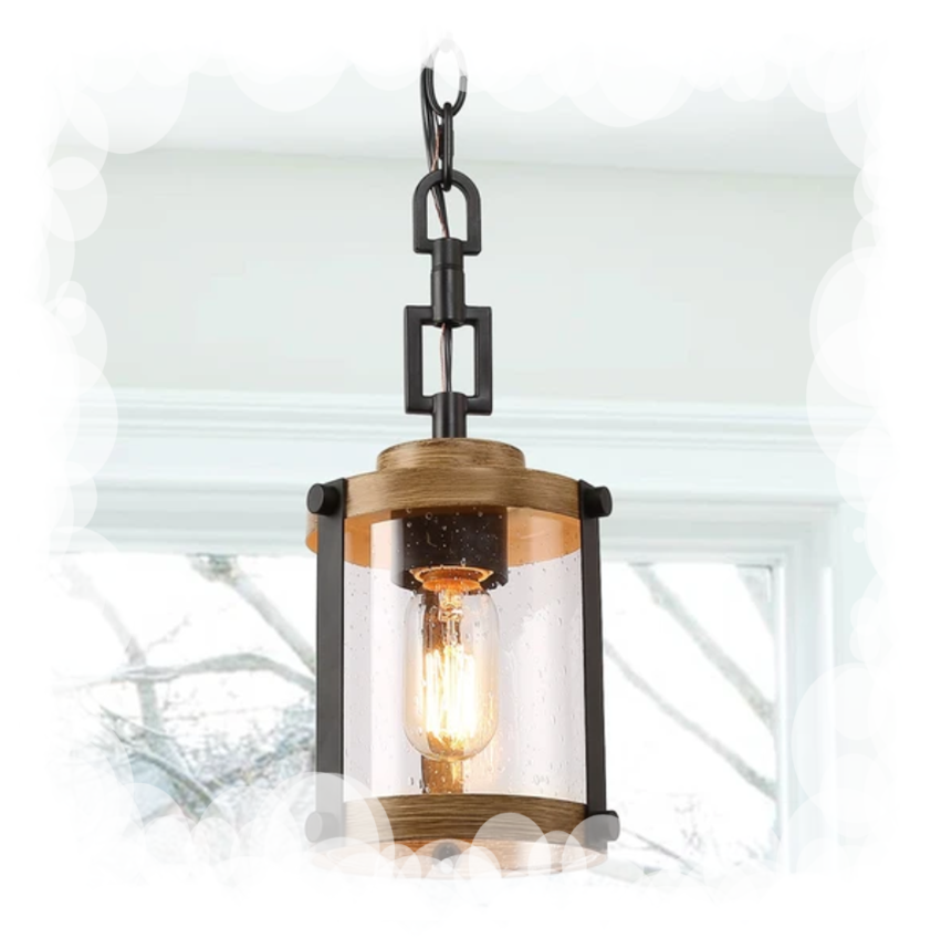 Farm style foyer pendant light has tiny bubbles in the glass softly diffuses the light and gives you the look of old glass while the black metal are appealing it, just like what would be in an old farm.