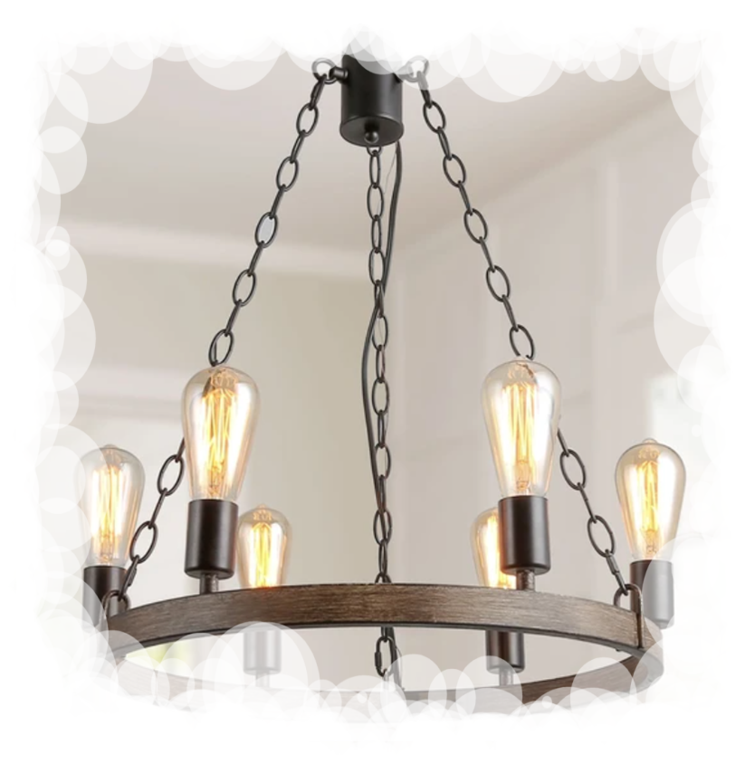 Light up your cozy home with a sense of farmhouse flair with this chandelier. Crafted from metal, its frame strikes a faux wood design. Six 60W standard bulbs (not included) stand exposed atop the arms to boost the brightness in your space. Assembly and installation are required.