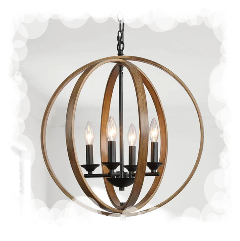 Featuring 3 rotatable metal bands, and faux-wood & black painted finish, this 4-light indoor chandelier comes with every element you need for creating a desired style environment.