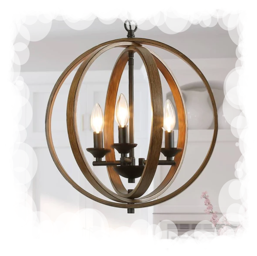 Featuring 3 rotatable metal bands, and faux-wood & black painted finish, this 3-light indoor chandelier comes with every element you need to create a desired style environment.