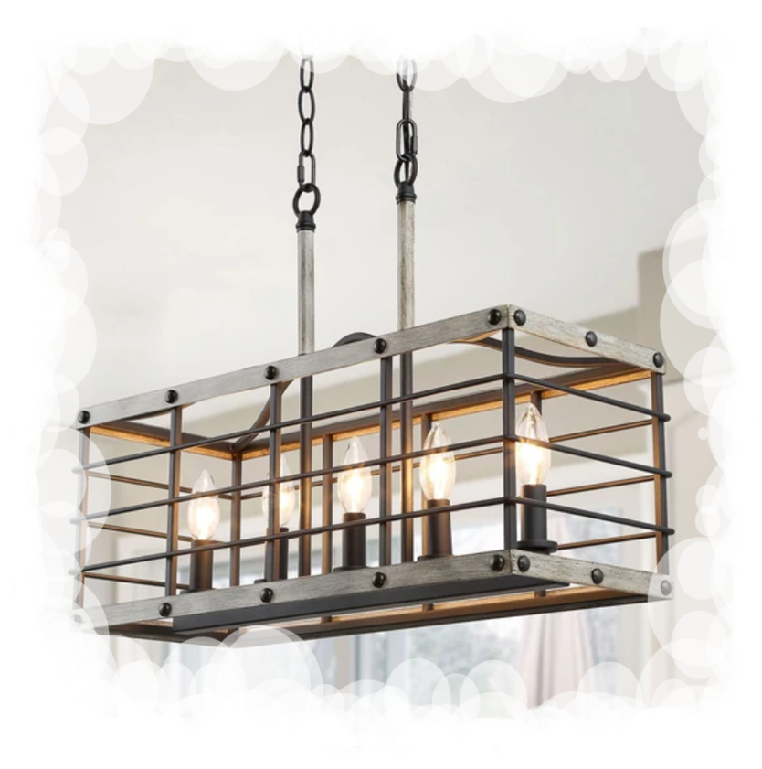 Loaded on a mixture of materials, including wood, iron, and glass, this farmhouse chandelier is full of rough country feel. The veneer of the pieces are hand-crafted with a rough touch to create the earthy and nostalgic charm.