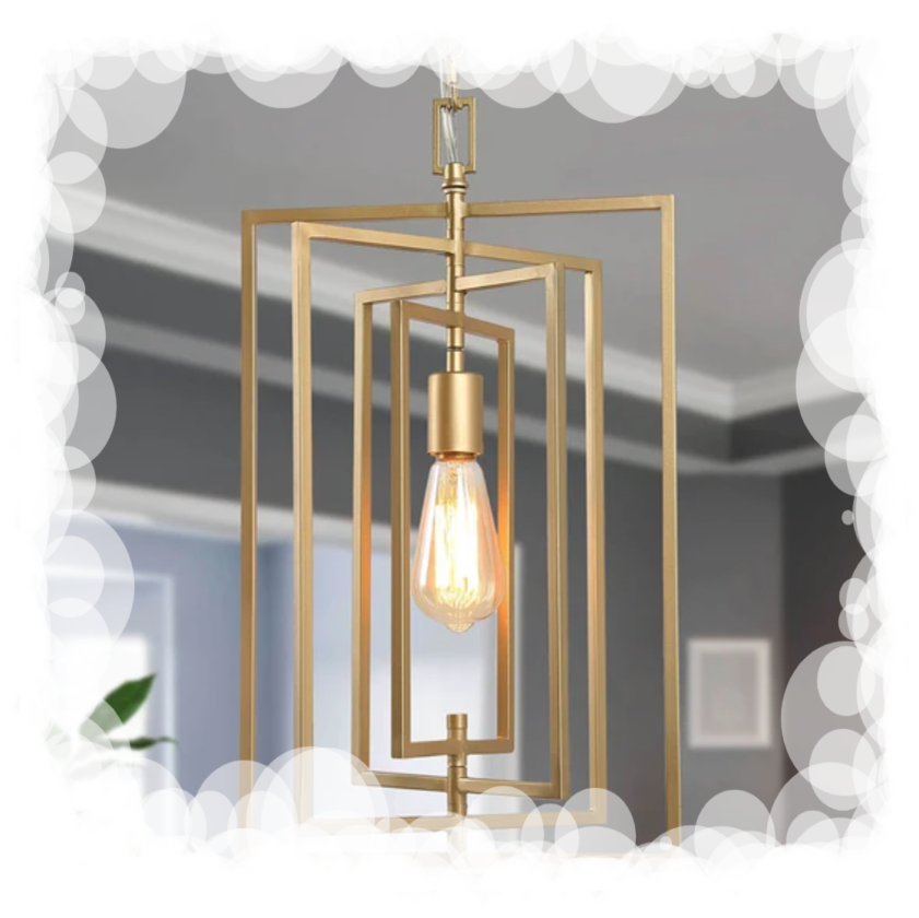 This contemporary chandelier composes of rosegold rectangle-shaped frames in polished nickel finish.