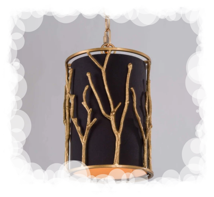 The black lampshade and the golden tree-like geometric design are intertwined to create a harmonious and high-end atmosphere.